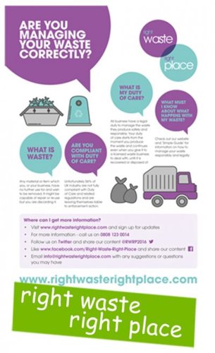 We are proud ambassadors for the 'Right Waste Right Place' campaign, which helps sole traders and small businesses understand their responsibilities around waste and recycling.